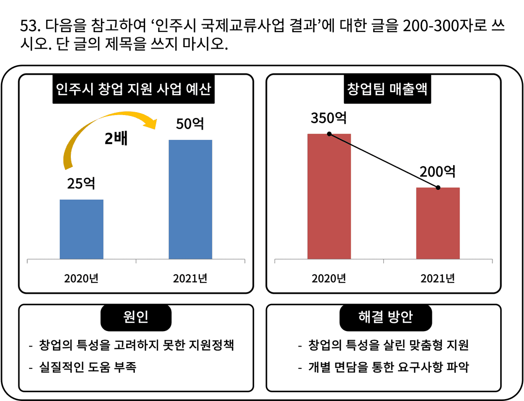 질문 : 실제 시험처럼 생각하면서 문제를 풀어 보세요. 수업을 잘 들었다면, 연습을 충분히 했다면 잘 쓸 수 있어요. 만약 어렵다면 복습을 더 해 보세요. 시간이 얼마나 걸렸는지도 확인해보세요.